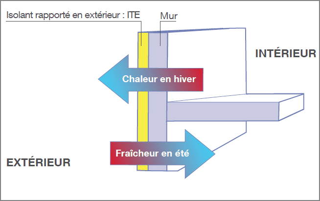 L’isolation thermique par l’extérieur permet de constituer un véritable manteau isolant continu autour d’une construction. L’isolation thermique extérieure contribue ainsi au maintien d’une température homogène dans le logement, hiver comme été.